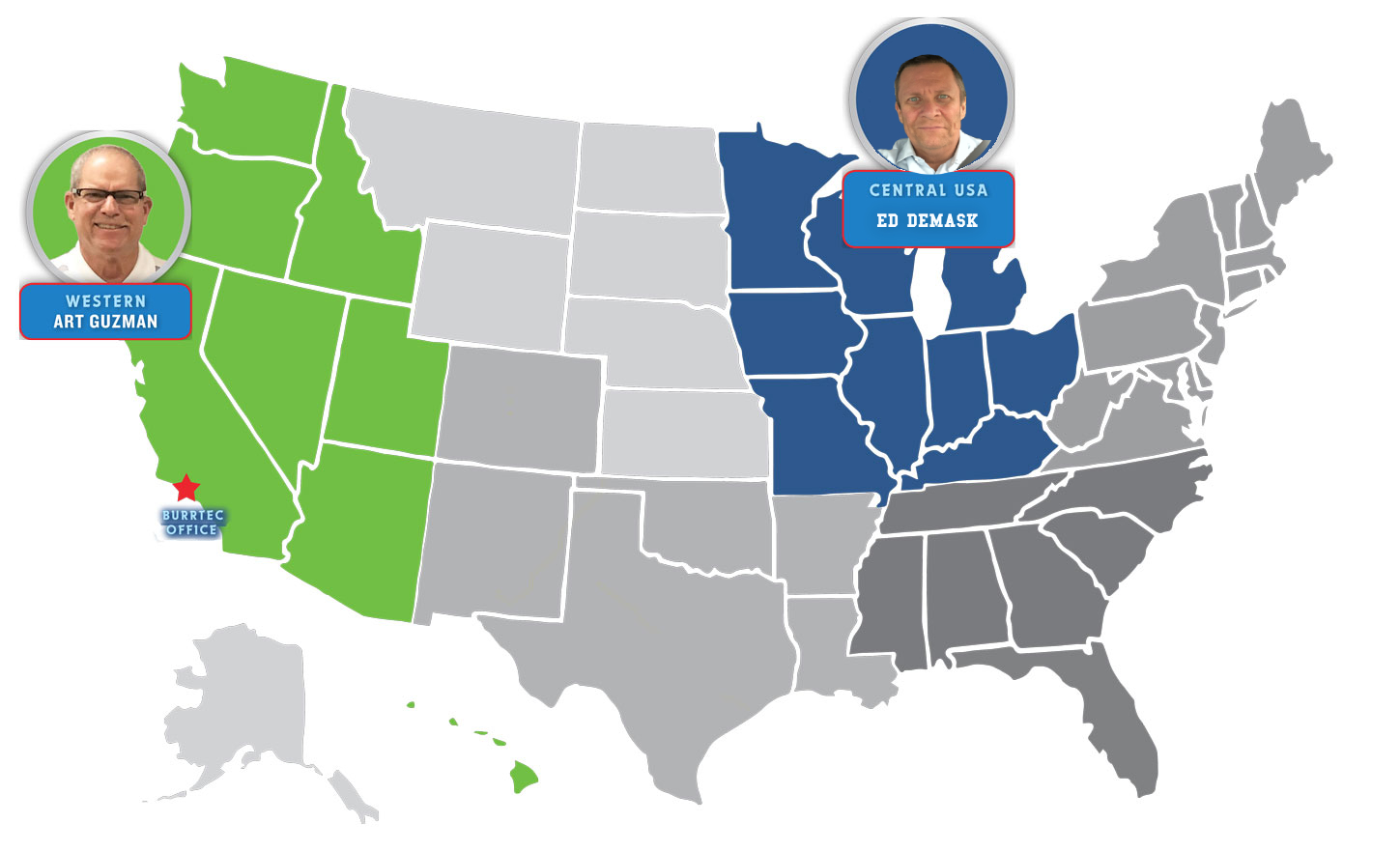 | MIDWEST | IN, KY, OH, MI, IL, WI, MN, IA, MO | Ed DeMask | ed@demaskmarketing.com 630-768-1404 |